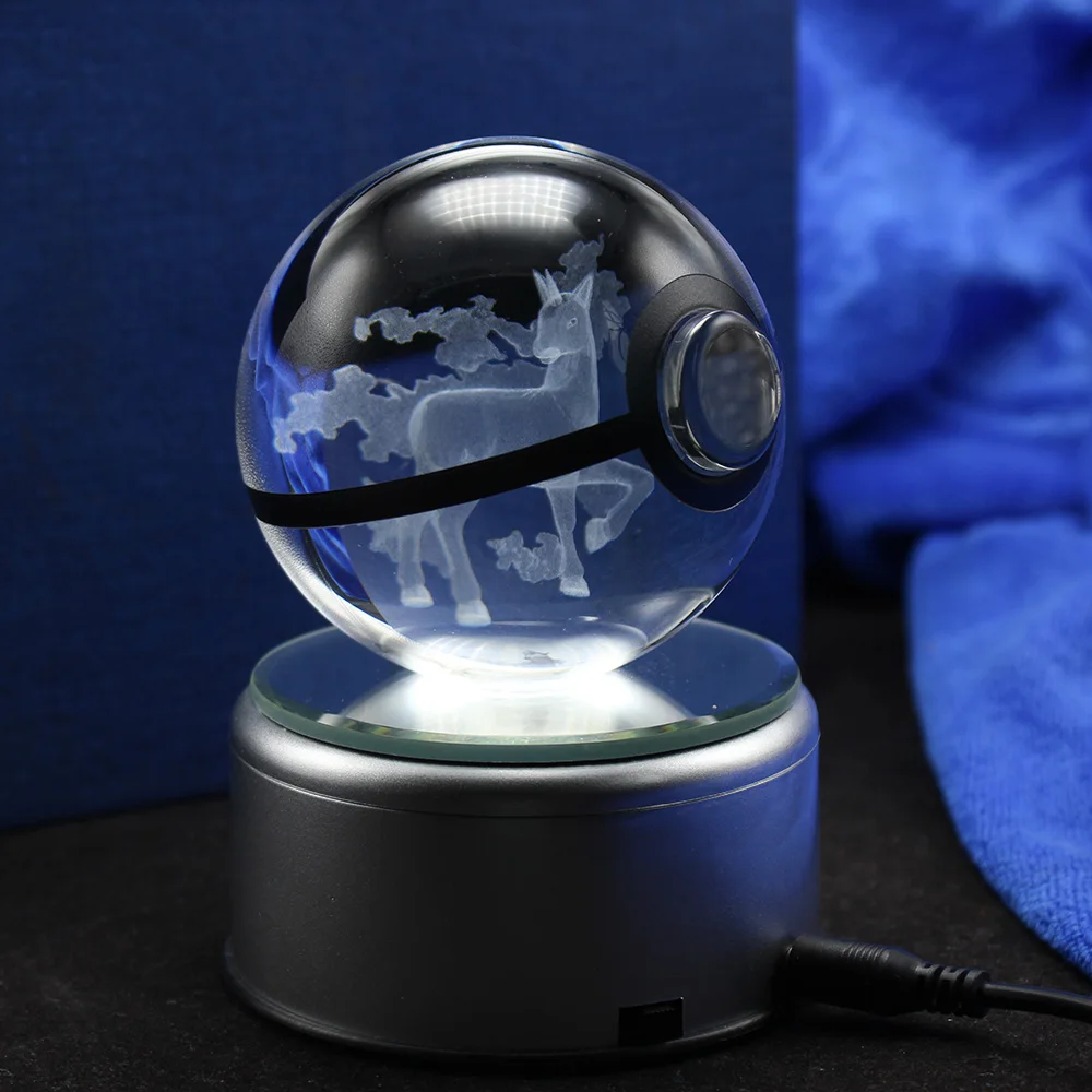 LED Night Light 3D Pokemon Go Engraving Rapidash Figures Glass Ball Toys Pokeball Brithday Gifts