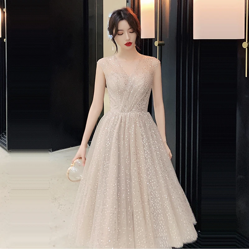 It's Yiyya Prom Dress Elegant V-neck Shining Short Vestidos De Gala Pleat Sequin Plus Size Women Pa